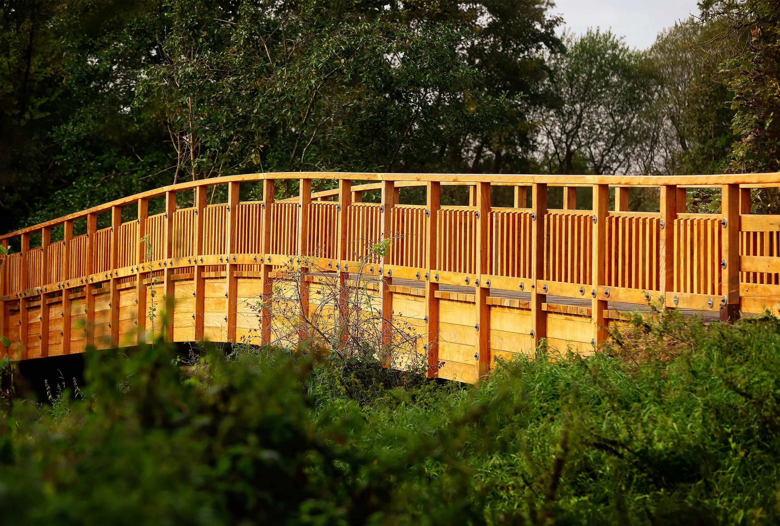 Criteria: This River Lagan footbridge had been in place for many years and needed to be almost wholly replaced due to structural instability. Paul McAlister Architects were the designers for the new foot bridge for our client Belfast City Council. The structural design and combination of the architectural aesthetics provides an elegant new foot bridge for the busy Lagan river towpath. The bridge is located not far from the Lock Keeper’s Inn coffee shop within the Lagan Valley Regional Park in Belfast. The design concept was to use timber as a sustainable material throughout the new structure and the timber detailing is a reflection of the traditional footbridge and the wish to design with sustainable materials.